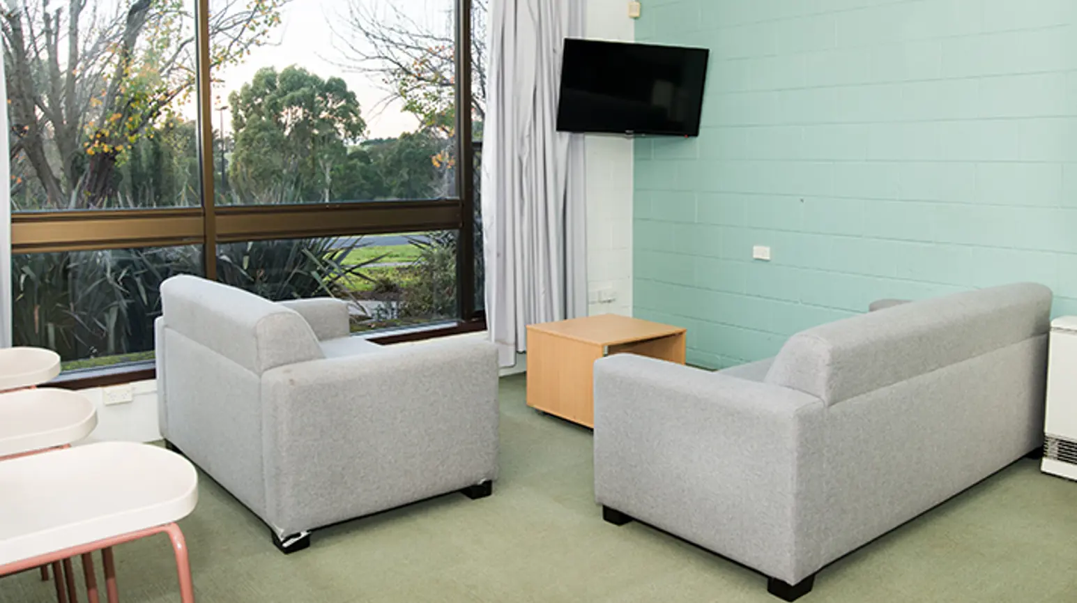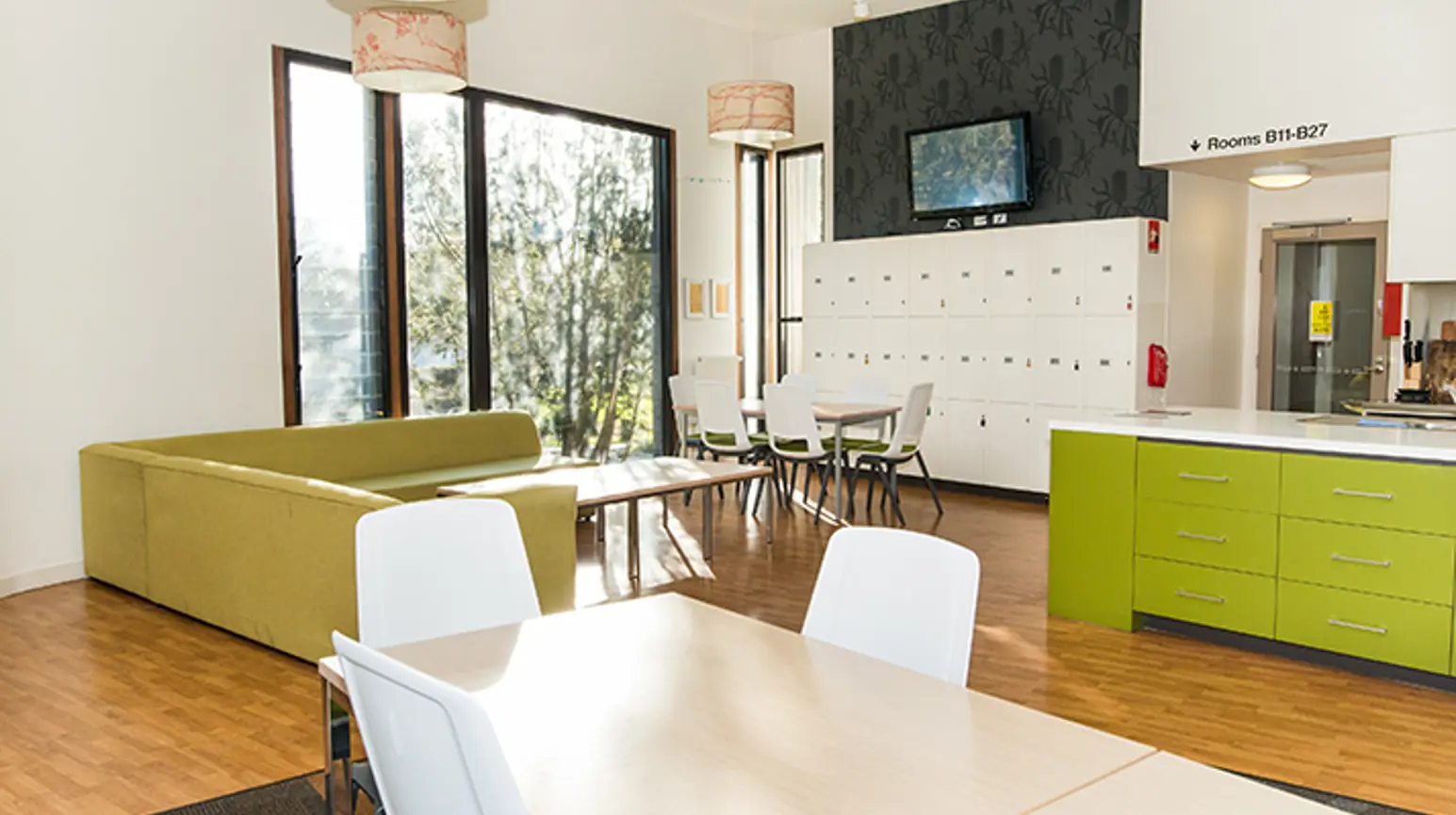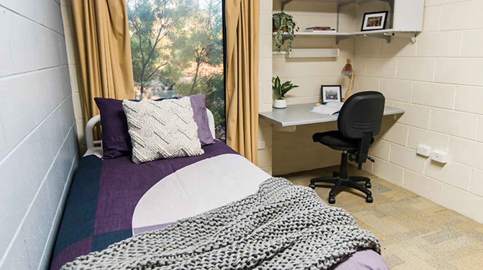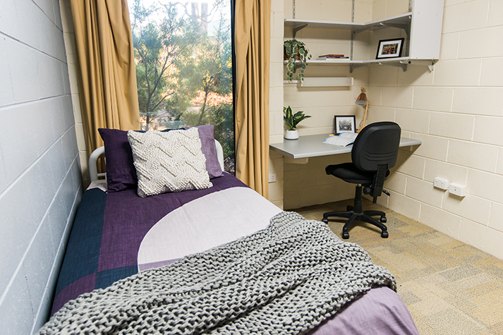Each self-contained unit has six bedrooms, plus a kitchen, lounge, bathroom and laundry. Partnered accommodation is also available – rooms are the same size as the others but include a double bed.