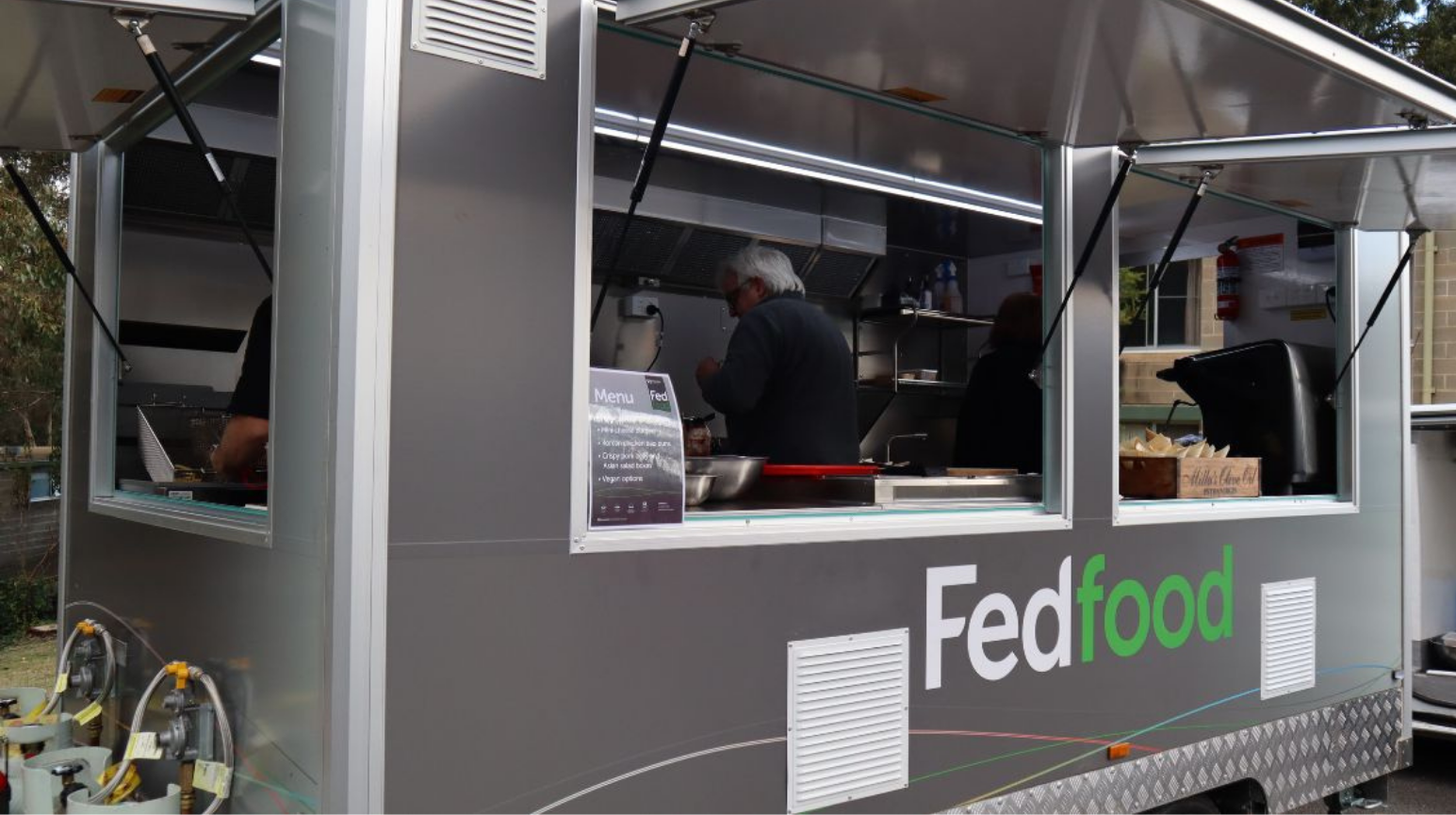 We keep things simple. We arrive, set up, cook and serve, then pack up and leave the space clean and tidy. Menus can be customised to suit your occasion, budget and dietary needs, using fresh, local ingredients wherever possible. A minimum spend of $1,500 applies to hire the FedFood van.