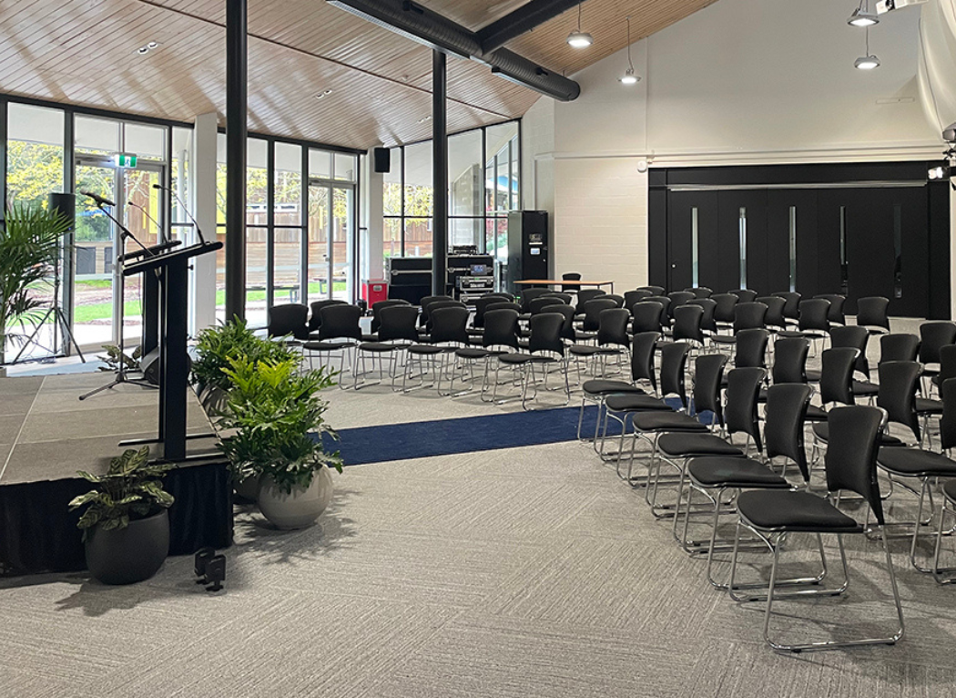 You can book the Albert Coates Complex at our Mt Helen Campus in Ballarat for events of all kinds. The space can be set up to suit groups from 60 to 300 guests.