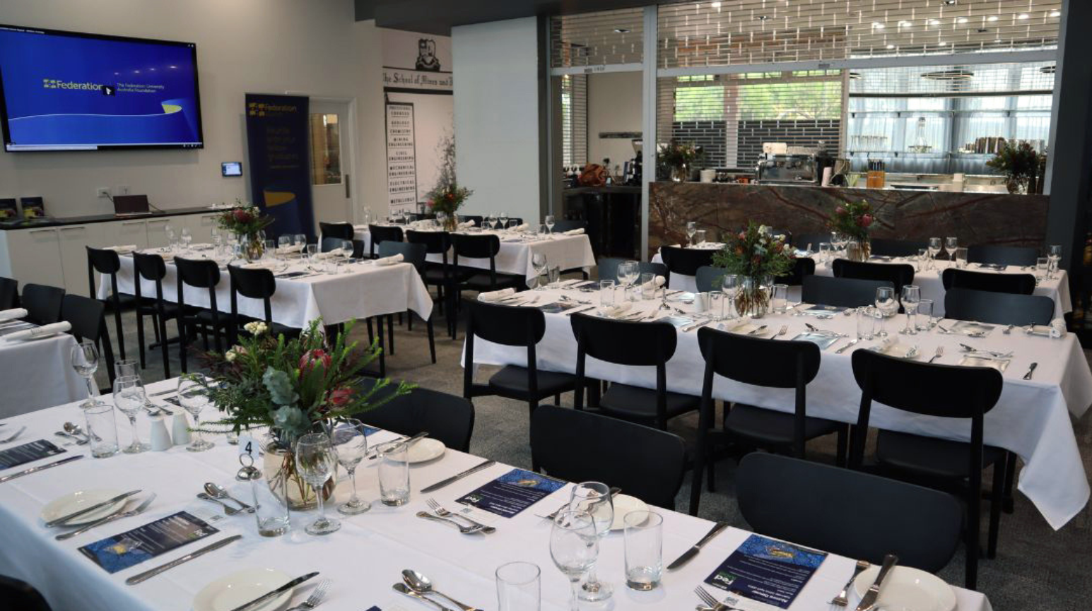 You can book the Prospects training restaurant at our SMB Campus in Ballarat for cocktail parties or sit‑down dining events, with room for up to 90 guests.